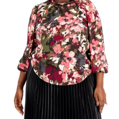 Best Pirce โ Anne Klein Plus Size Floral-Print Balloon-Sleeve Top Anne Black Combo ๐