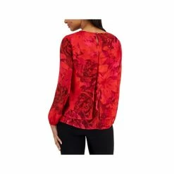 Best deal ๐งจ Anne Klein ๐ฉ Women’s Chiffon Long-Sleeve Double-Layer Blouse Poppy Multi ๐