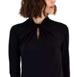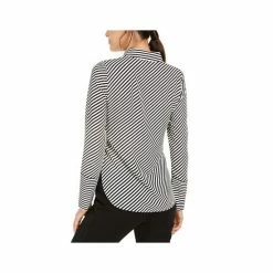 Brand new ๐ Anne Klein ๐ฉ Women’s Striped 3/4-Sleeve Mock-Neck Top Anne Black/gold Lurex ๐ฏ
