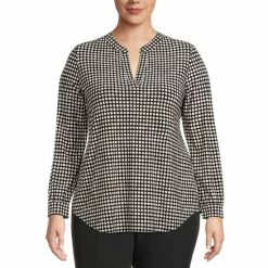 Flash Sale ❤️ Anne Klein Plus Size Faux-Wrap Draped Long-Sleeve Blouse Anne Black / Anne White 🌟
