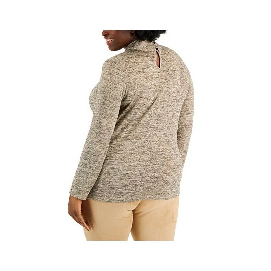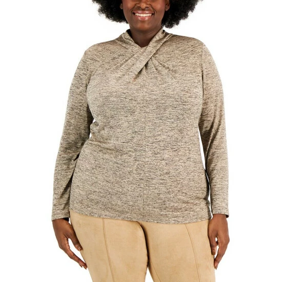 Anne Klein beautifully updates this plus size top with a glitter-knit fabric and stylish twist-neck design.