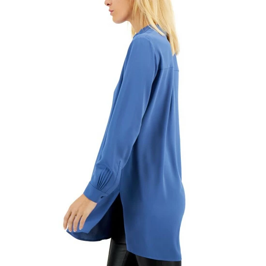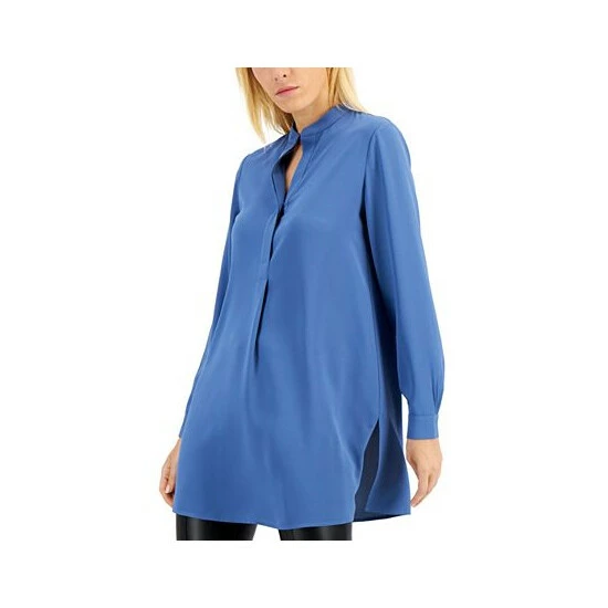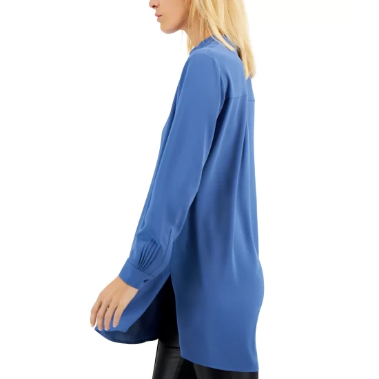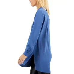 The timeless Henley gets a chic remake in this look from Anne Klein, a soft tunic finished with vents at the sides.