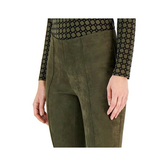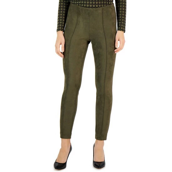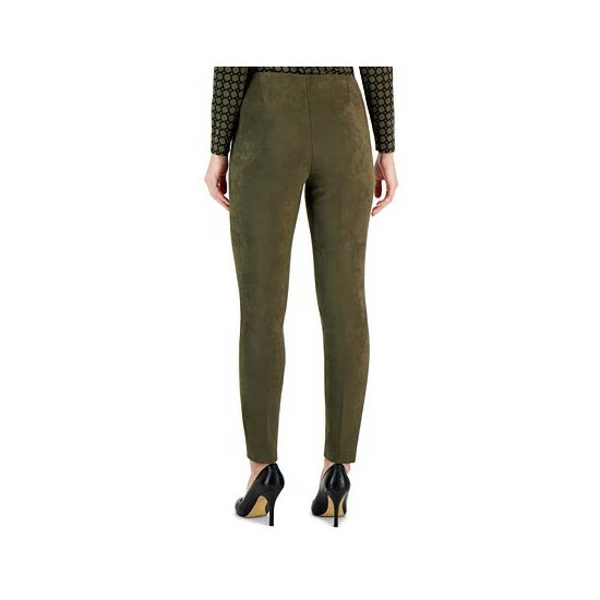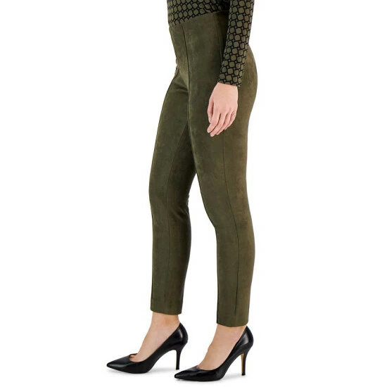 We love the polished look of these sleek faux suede slim pants from Anne Klein, finished with a front seam for tailored detail.