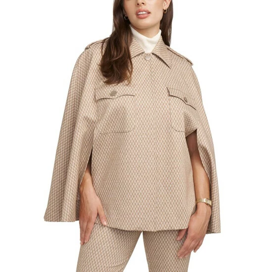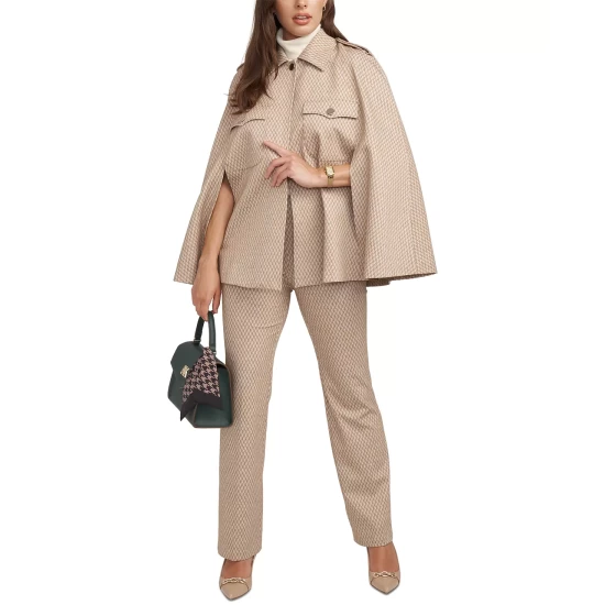 A chic topper for your looks this season, this petite cape jacket from Anne Klein features a sophisticated chevron pattern.