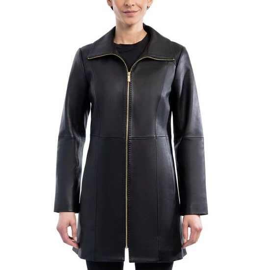 Give every look a sleek finish with this petite coat from Anne Klein designed in genuine leather and finished with a full zip front.