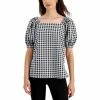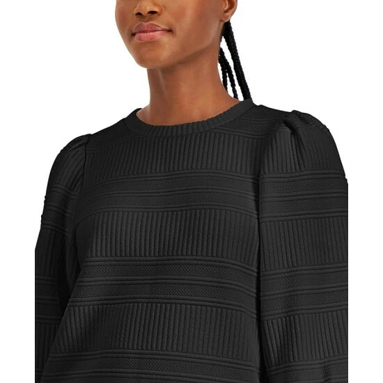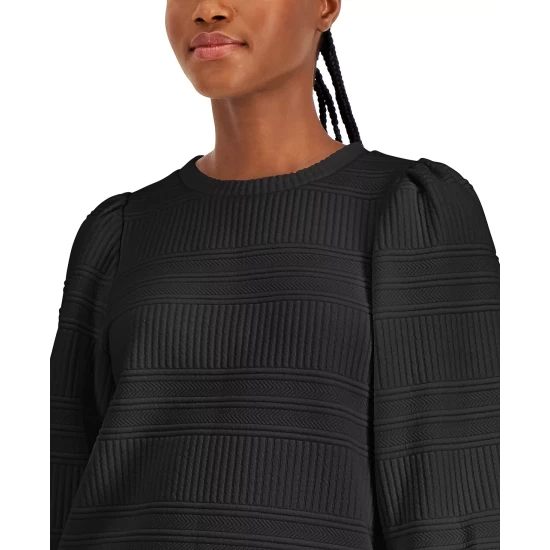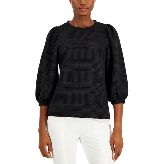 Anne Klein brings fascinating detail to this blouson-sleeve top with a quilted, tonal pattern throughout.