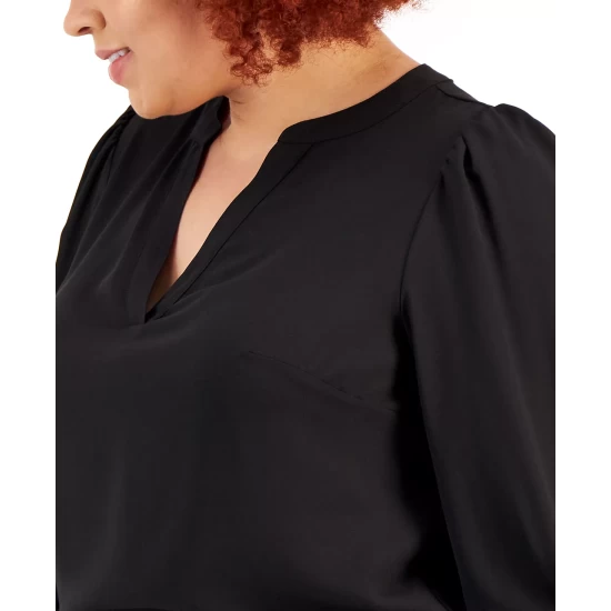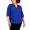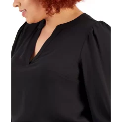 A positive/negative take on plaid patterning, Anne Klein’s flowy knit zip-front cape is a striking layer.