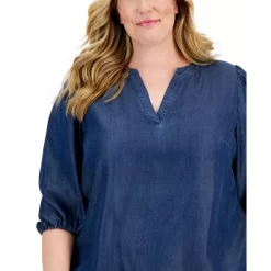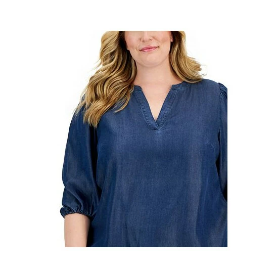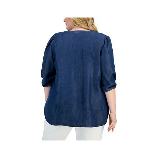 A goes-with-everything top: this Anne Klein plus size denim blouse is perfect for weekend casual or workweek professional depending on how you style it!