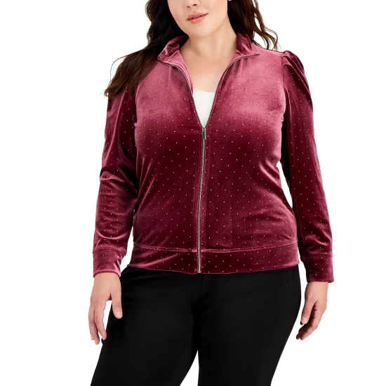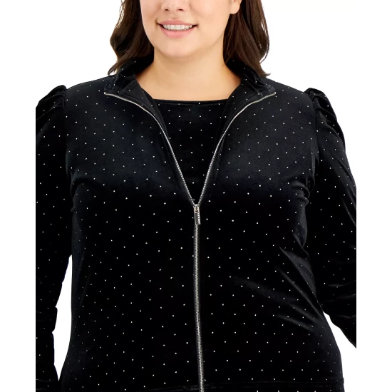 Slip into style and comfort in this pretty plus size zipper sweater from Anne Klein.