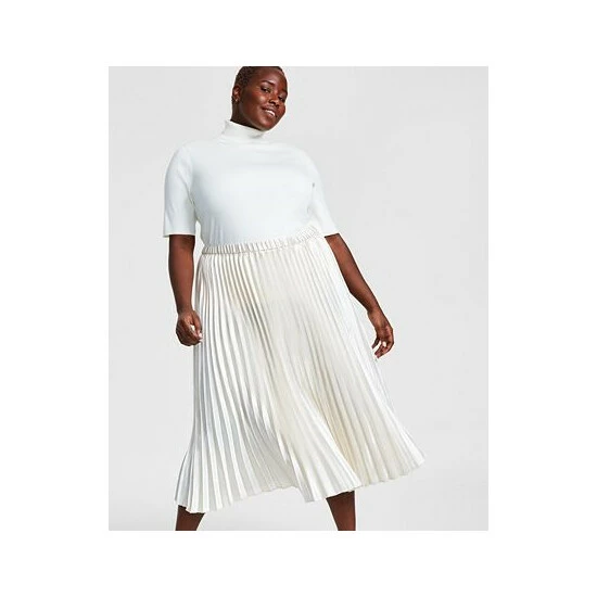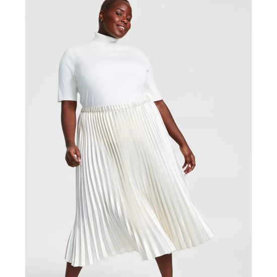 Wholesale ⭐ Anne Klein 👩 Women’s Half-Sleeve Turtleneck Top & Pull-On Pleated 👗 Skirt Chianti 👏