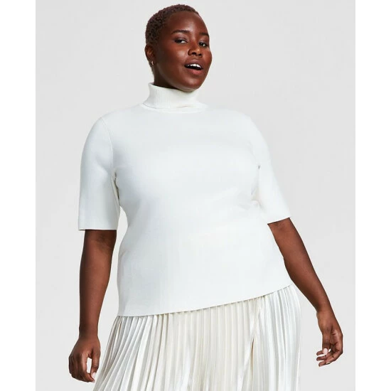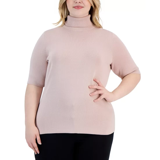 Bring elegant simplicity into dressed up or casual looks with this plus size turtleneck sweater from Anne Klein.