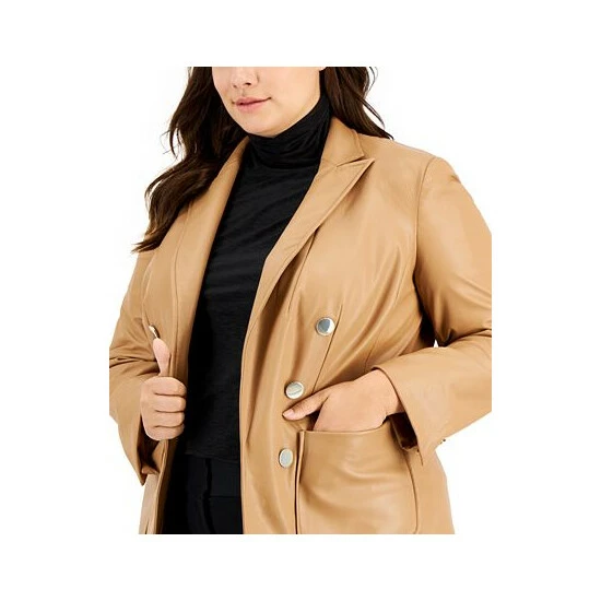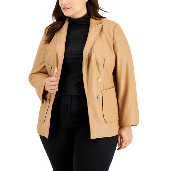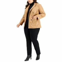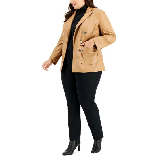 Top off your look with chic perfection in this plus size faux leather jacket from Anne Klein.