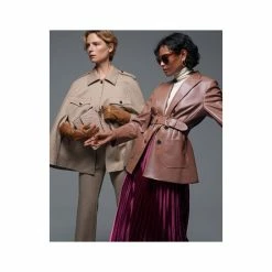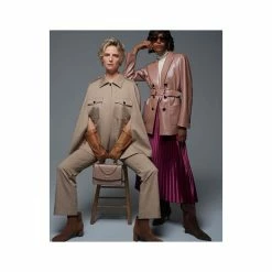 - Notched lapel; faux button closures at front