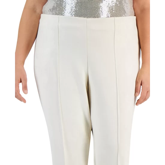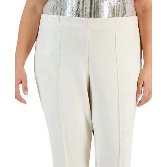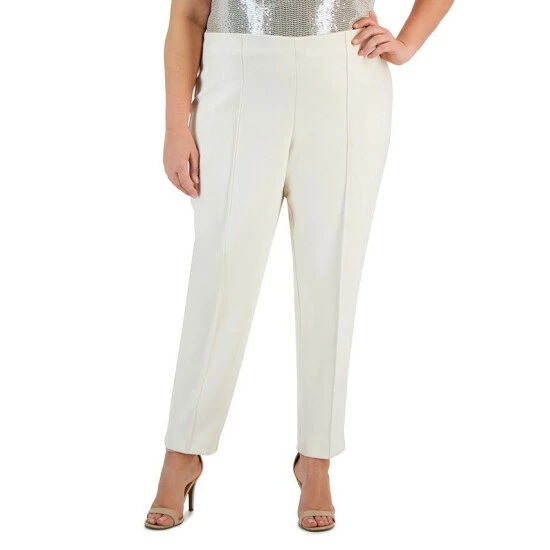 Faux-suede adds real textured appeal to the sleek shape of these plus size ankle pants from Anne Klein.
