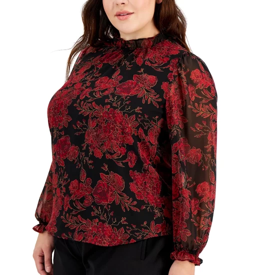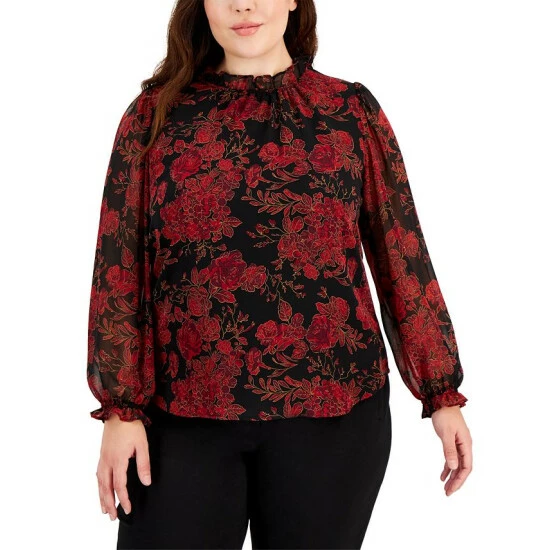 Bring some timeless style to your work look in this pretty plus size floral-print top from Anne Klein.