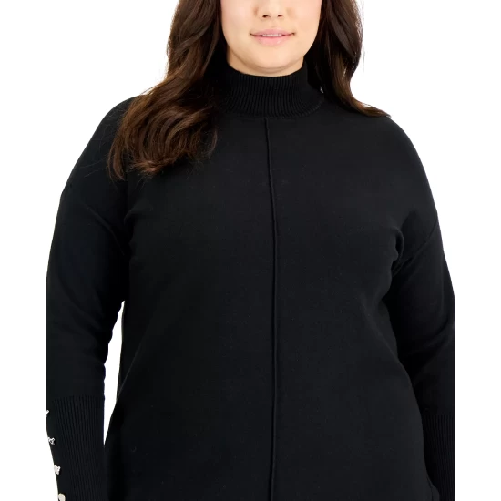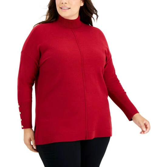 Cozy up on chilly days and look cute in this plus size mock neck sweater from Anne Klein with button embellishments.