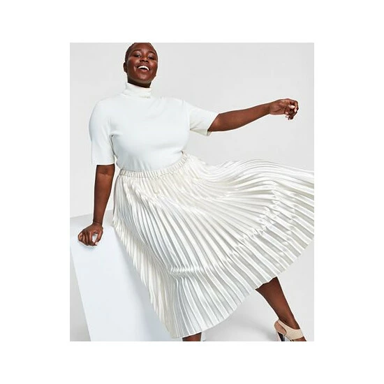Pleats add movement to your every step when you walk into a room wearing this effortless plus size skirt by Anne Klein.