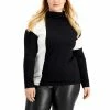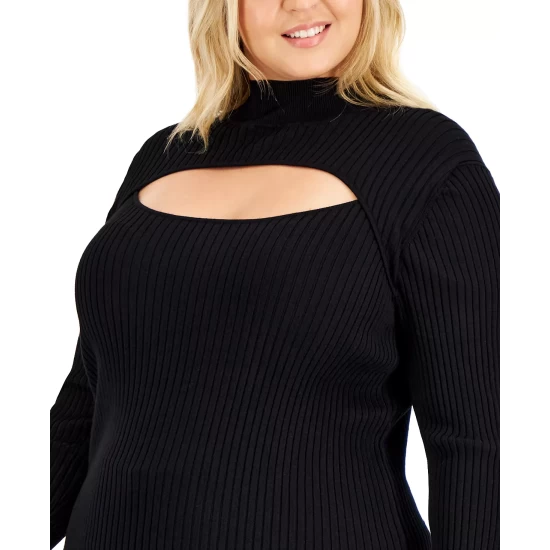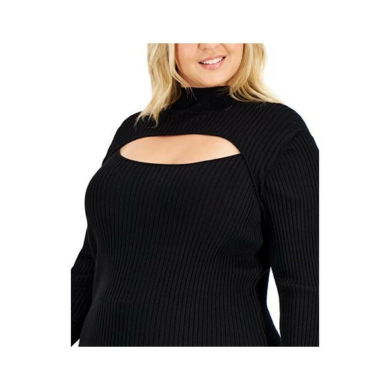A sleek silhouette with something extra, this ribbed mock neck plus size sweater from Anne Klein is updated with a cutout in front.
