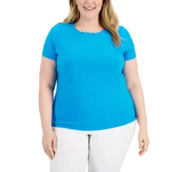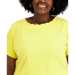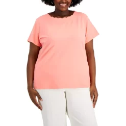 A scalloped neckline lends an elegant finish to this plus size T-shirt from Anne Klein.