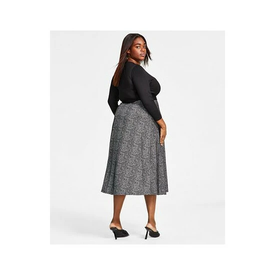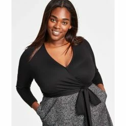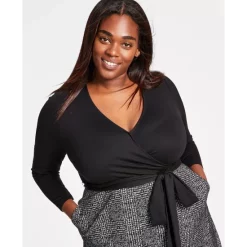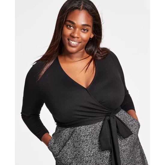 - Surplice neckline; Midi silhouette