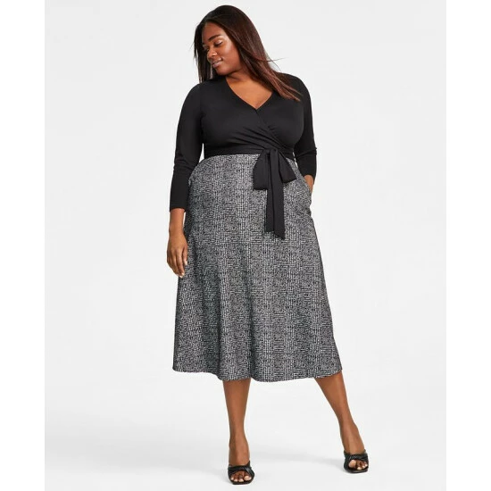 Contrasting details draw the eye and create a flattering aesthetic on this unique two-tone dress by Anne Klein.