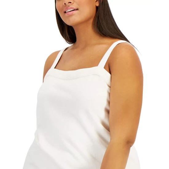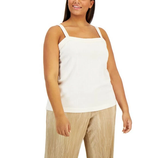 Get back to staples with this easy-to-style plus size tank top from Anne Klein, featuring a smart squared neckline.