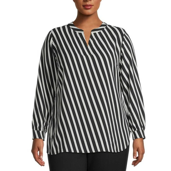 In versatile stripes and an easy silhouette, Anne Klein’s plus size blouse works for the office and on weekends—however you decide to wear it.
