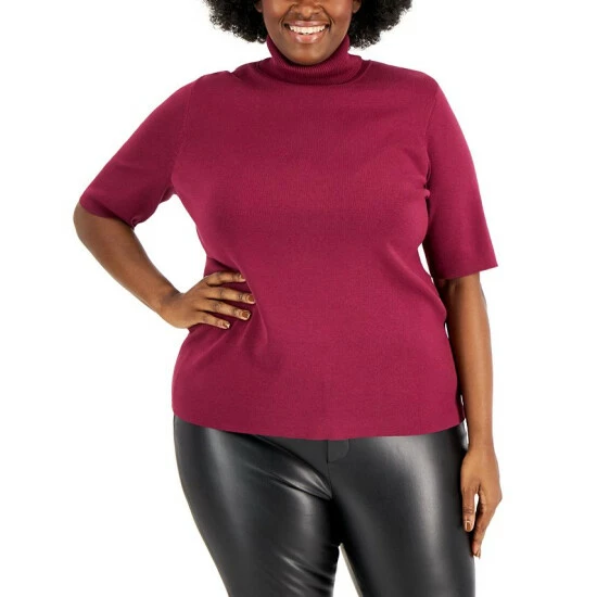 Refresh your wardrobe with this turtleneck sweater designed to flatter the plus size figure. Anne Klein adds a chic touch to the stylish staple by including elbow-length sleeves, allowing this sweater to become a go-to favorite as you transition from cool to cold temperatures.
