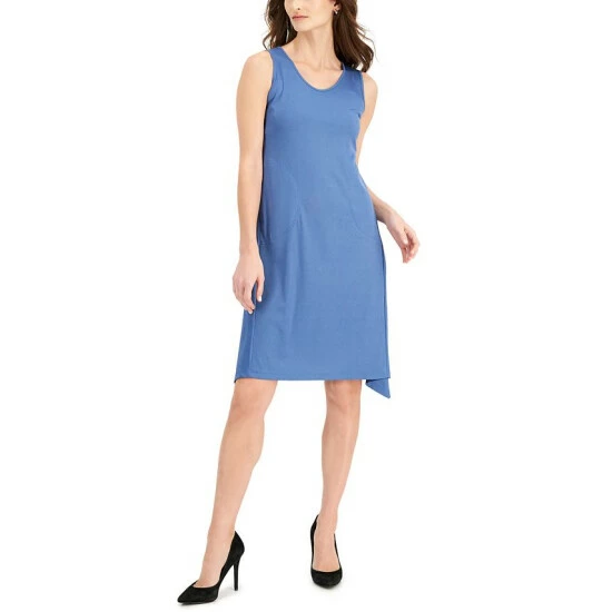 Mini-ribbed jersey-knit in a minimalist silhouette, this Anne Klein A-line dress can be dressed up for work and pared down for a casual dinner.