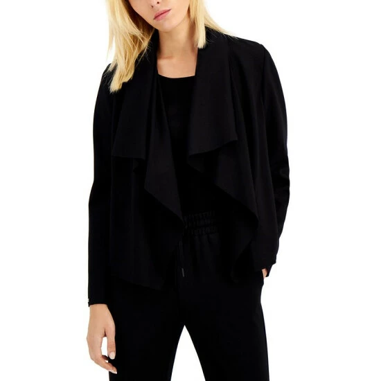 Top off your looks with this jacket from Anne Klein featured with a drape front design for an elevated finish.
