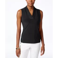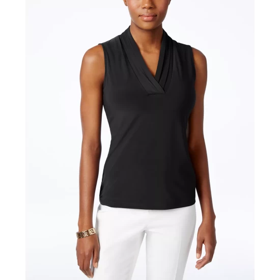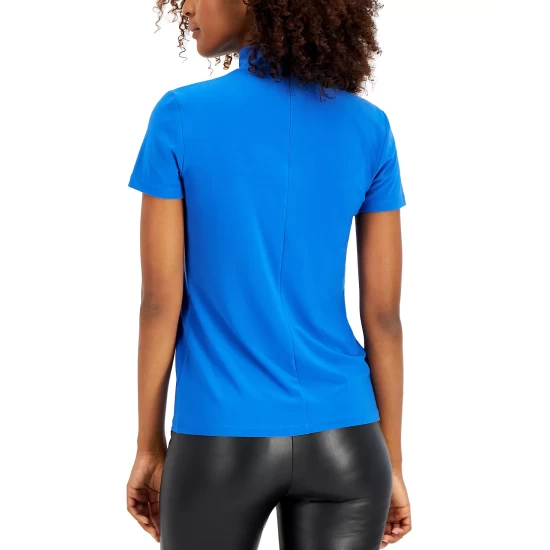 Anne Klein makes your workweek style polished and easy to pair with this versatile mock-neck short-sleeve top.