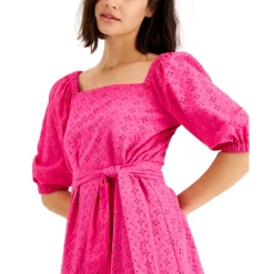 Pretty puff sleeves frame this super-feminine fit & flare dress from Anne Klein, with a self-tie detail at the waist to add to this already graceful look.