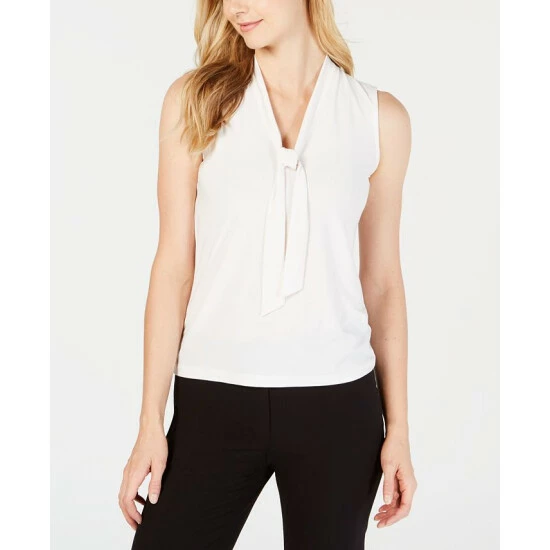 The perfect workweek layering essential, Anne Klein’s sleeveless top features a classic tie detail at the neckline.