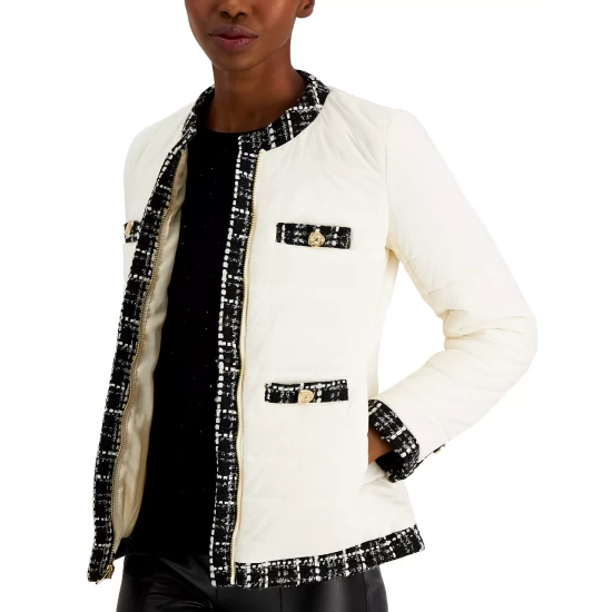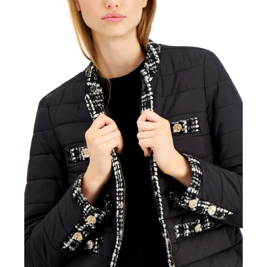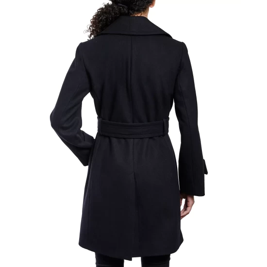 A notched collar and a self-tie belt come together flawlessly for classic style on this peacoat from Anne Klein.