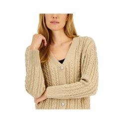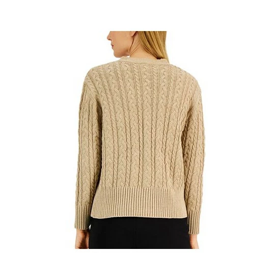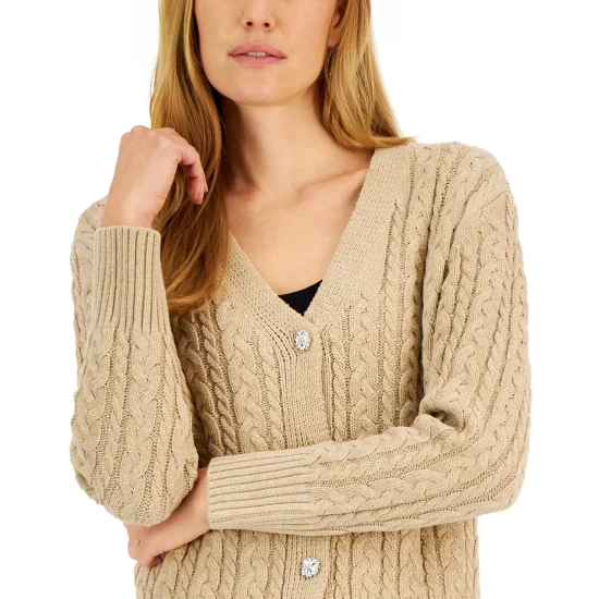 Classic cable knit is refined with charmingly sophisticated jewel buttons, this Anne Klein cardigan combines comfort with a polished style for a flexible workwear addition.