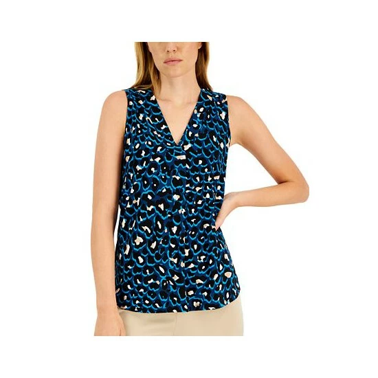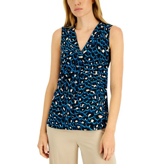 Anne Klein brings a pop of color and pattern to your workweek look with a cheetah-print V-neck tank.