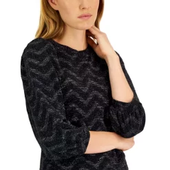 Anne Klein brings us a chic-but-polished top that is framed with sleek balloon sleeves and is finished in a classic chevron texture.