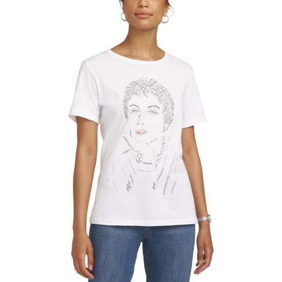 Confident, sophisticated, powerful: the many faces of Anne Klein are drawn into this unique signature T-shirt in cool cotton knit.