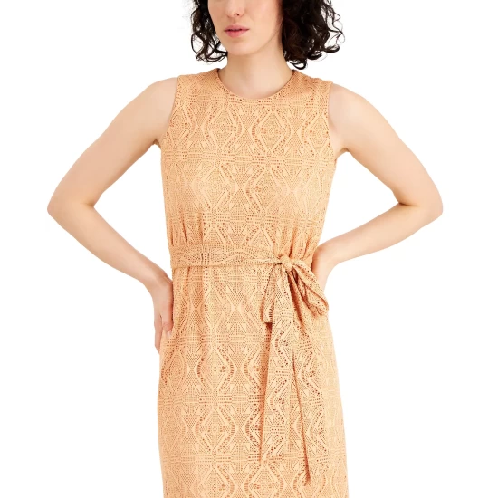 Stitch together a chic look in Anne Klein’s crochet dress, cinched by a belted waist.