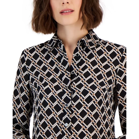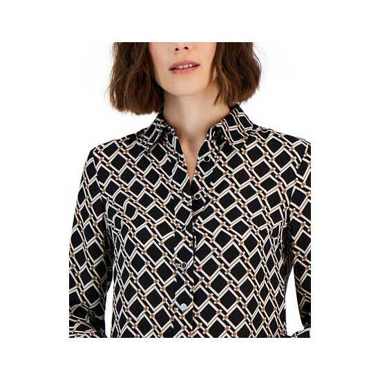 Anne Klein finishes a classic button-down shirt with a sleek and sophisticated print, the perfect piece for an instantly polished look.