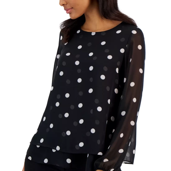 The perfectly polished jacket by Anne Klein, featuring a classic double-breasted silhouette and finished in a buttery soft scuba suede.