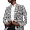 Sleek faux-leather is perfectly paired with a polished quilt-design in this always-on-trend jacket by Anne Klein.
