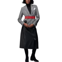 Sleek faux-leather is perfectly paired with a polished quilt-design in this always-on-trend jacket by Anne Klein.