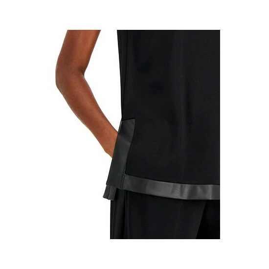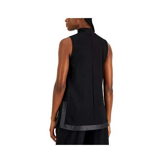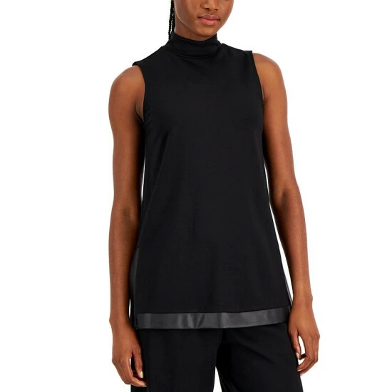 Modernize your office style with this sleek tunic by Anne Klein. Styled with a sophisticated mock neck, faux-leather trim at the bottom adds a bit of extra polish.