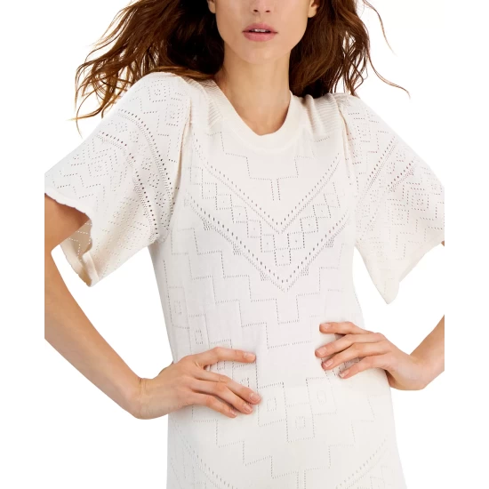 A gauzy mesh overlay features flocked dots for just the right amount of whimsy on this flowy midi skirt from Anne Klein.
