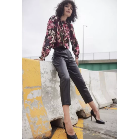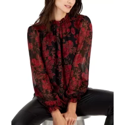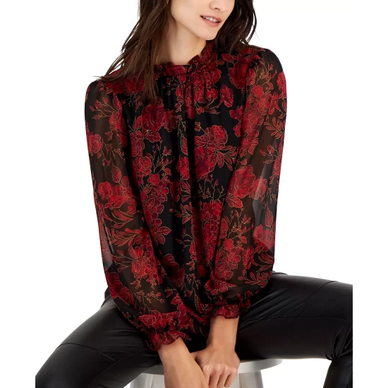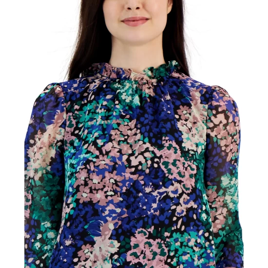 Anne Klein adds sophisticated style to your wardrobe with floral-print blouse, featuring a ruffled neckline for added elegance.