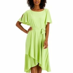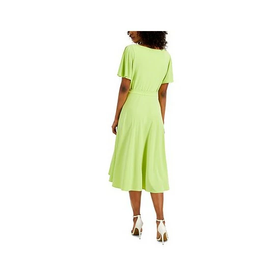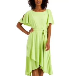 Fluttery sleeves lend endless beauty to this effortless A-line dress from Anne Klein, complete with a sash tie at the waist.