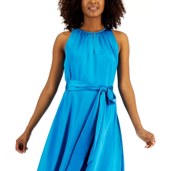 Opt for a flawless evening look with this midi-length dress by Anne Klein, a flattering look with a waist-cinching tie.