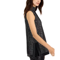 Sleek with leggings, this jacquard tunic by Anne Klein is sophisticatedly elevated by a faux-leather trim and side-slit design.
