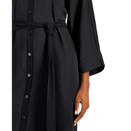 Styled from smooth satin crepe, Anne Klein takes the quintessential shirt dress to a whole new level of sophistication.